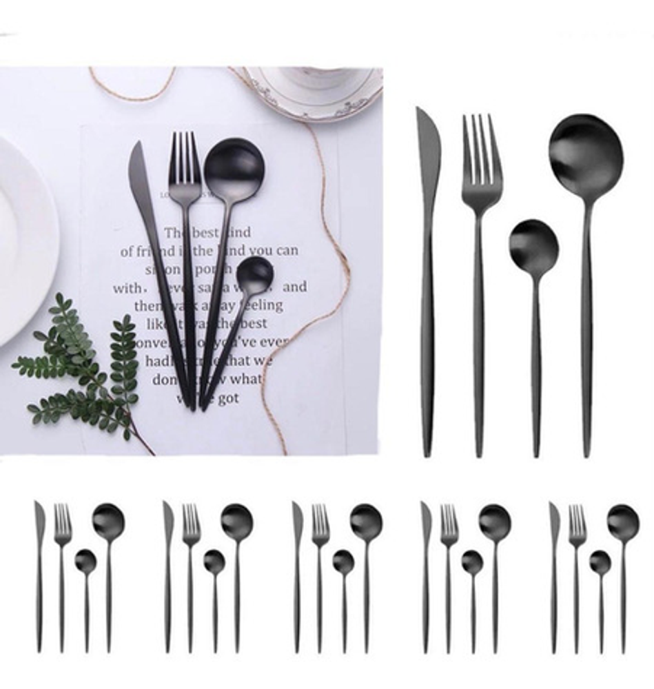 Set de 24 cubiertos de mesa. Incluyen tenedor, cuchillo y cuchara sopera y cuchara postre