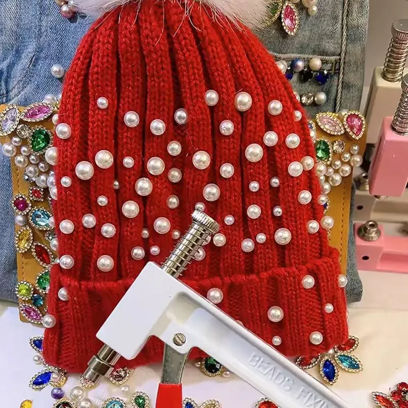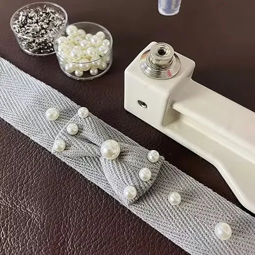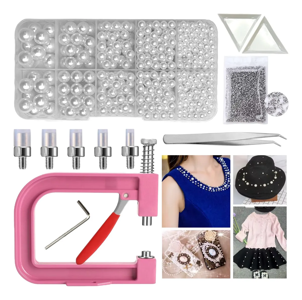 Kit para colocar perlas enteras de 4 mm, 5 mm, 6 mm, 8 mm y 10 mm de diámetro de forma rápida y sencilla en todo tipo de telas.