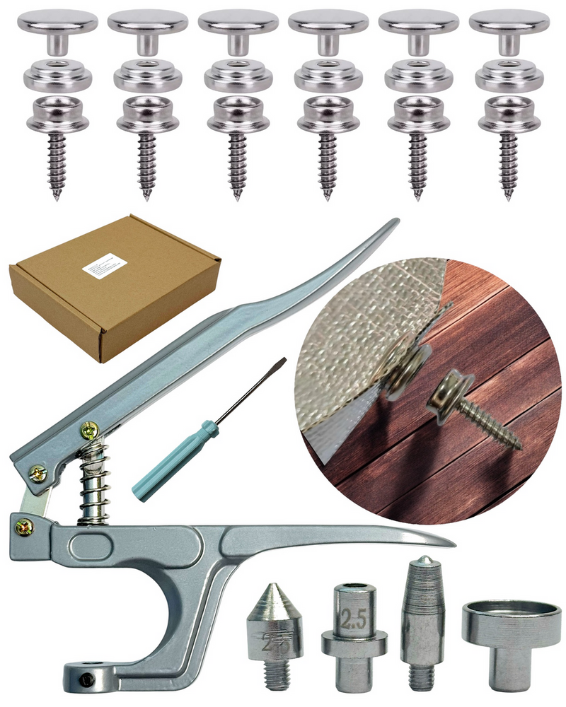 Kit Colocador Broches Presión Con Tornillo P/ Lona Náuticas