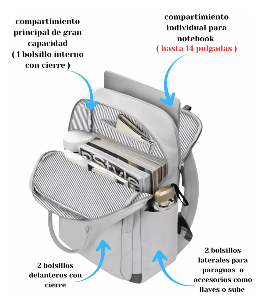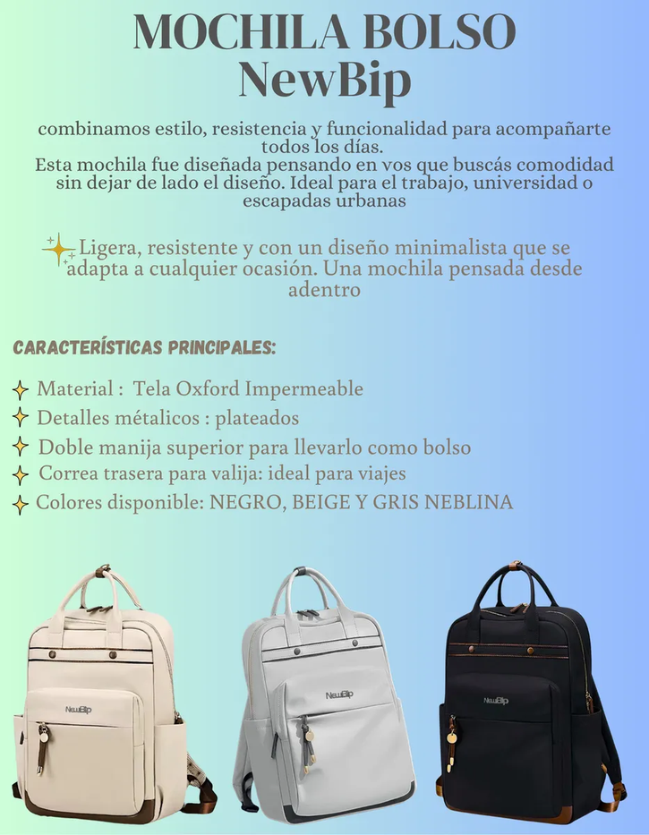 Mochila Bolso New Bip Tela Oxford Impermeable