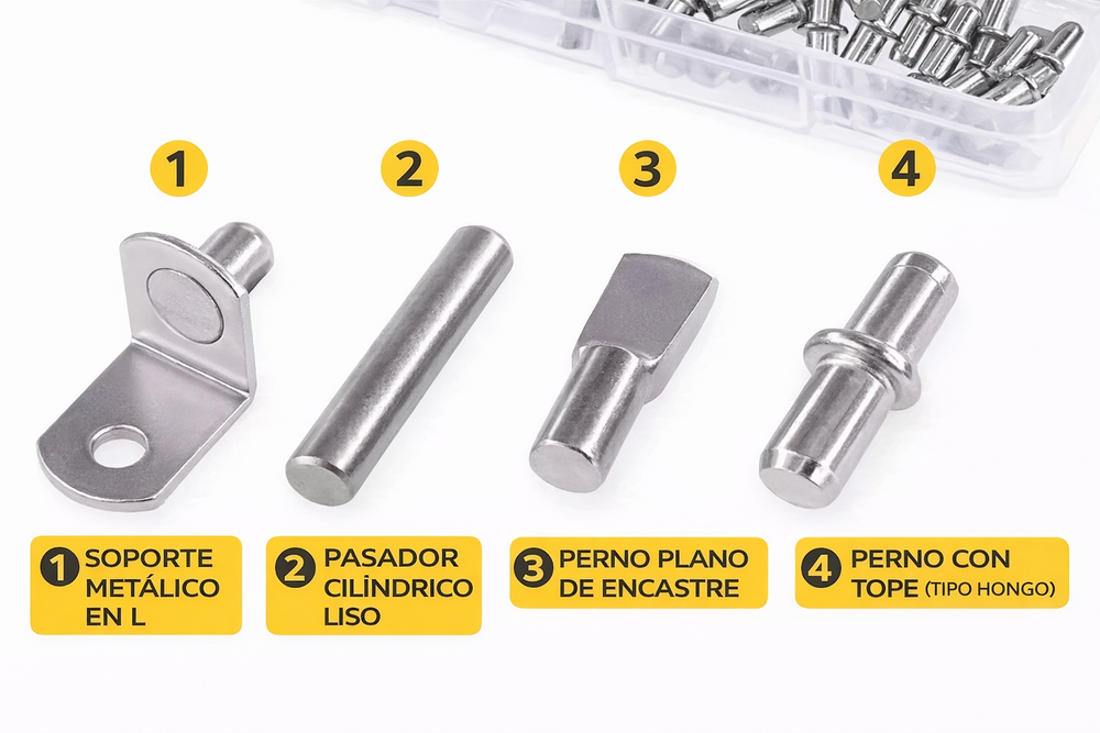 Los Soportes Metálicos Pituto para Estantes de Madera son la solución ideal para quienes buscan robustez y funcionalidad en sus muebles. Con un largo de 25 mm y un diámetro de 5 mm, estos remaches están diseñados para ofrecer un soporte firme y duradero, asegurando que tus estantes se mantengan en su lugar. Fabricados en metal de alta calidad, estos pitutos garantizan una resistencia superior, lo que los convierte en una opción confiable para cualquier proyecto de carpintería. Su diseño de cabeza de 5.0 mm permite una fácil inserción y un acabado estético, ideal para quienes valoran tanto la funcionalidad como la apariencia.